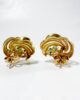 Elegant pair of 70s earrings in 18-carat gold with stylized twig pattern in yellow gold set with 3 brilliant-cut precious stones. An emerald, a ruby and a sapphire highlighted by a white gold line with a grain pattern set with an 8×8 diamond follow one another for a most colorful and luminous effect. The pair is secured by a precious butterfly clasp, for a very discreet finish.