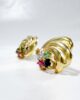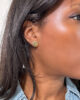 The story: In jewelry, the mixture of multicolored gemstones is referred to by the term “tutti-frutti”. Here, it is a most minimalist and precious tutti frutti by staging the 3 colored gems that are commonly described as “precious”. There is no doubt that emeralds, rubies and sapphires are rare and coveted in the world of jewelry. Nevertheless, the gold Alpa clasps are not to be outdone. Indeed, they differ from butterfly clasps, the most common, by their ingenious closure system. By simply pressing the two buttons on either side of the clasp, a hole is revealed to allow the stem of your earring to be slipped in. As soon as the buttons are released, the orifice closes and the stem is firmly held to its attachment. Thus, Alpa clasps represent a very secure system for your earrings.