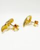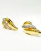 Adorable pair of 18k gold 60s stud earrings featuring a yellow gold arabesque pattern centering a diamond-finished white gold arabesque. Secured by a butterfly clasp, this piece of jewelry is sure to become your everyday companion.