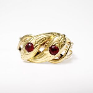 The snake has been used frequently in jewelry since ancient times. Snake jewelry, especially snake rings, is elegant and mysterious and has always been a beloved jewelry element. In ancient times, snake jewelry signified the owner’s desire for eternal youth and immortality, just as the snake, which continuously undergoes painful shedding but manages to survive and live a new life. Between the 1820s and the 1950s, European culture was greatly influenced by Eastern culture. Indian culture, in particular, had significant influence in the jewelry industry. Over a large part of India and South Asia, there are carved representations of cobras or nagas in stone and wood, notably at the entrance of shrines. The snake was associated to perpetual renewing because of its shedding, but also to fertility.