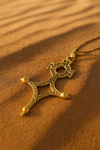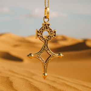 The origins of the Cross of the South reach deep into the Saharan region, particularly around the city of Agadez, in present-day Niger. There, among the Tuareg, a nomadic Berber people renowned for their silversmithing, this pendant — called tanaghilt or tasagalt — became an emblem of identity, protection, and family tradition. Each piece was traditionally cast in silver using the lost-wax technique and often given from father to son as a symbol of adulthood and blessing.