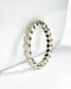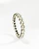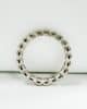 Sublime alliance américaine des années 70 en or blanc 18 carats composée d’une succession de 21 diamants de 0,01 carats taille brillant en serti clos. Chaque pierre, sertie sur un chaton rond, est mise en lumière par une galerie ajourée. Une pièce intemporelle à l’élégance classique, à porter au quotidien seule ou en layering avec d’autres bagues.