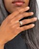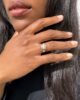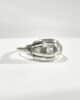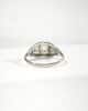 Sublime bague Art Déco en or blanc 18 carats sertie de trois zircons blancs taille brillant, un central de 0,15 carats et deux de 0,1 carats. Un bijoux d’une blancheur lumineuse et éclatante, aux lignes rectilignes caractéristiques du style Art Déco.