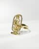 Cette nouvelle TransfÓ ou transformation signée ÓNÍSÌ PARIS est une cartouche issue d’un bracelet égyptien des années 50 en or 18 carats qui présentait 3 cartouches. Montée sur un anneau vintage en or 18 carats également et présentant un design assymétrique, cette sublime cartouche présente le motif du scarabée sacré, porte bonheur dans la culture égyptienne. Une pièce sublime et unique.