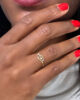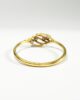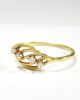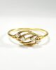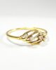 Sublime bague des années 70 en or 18 carats formée d’un anneau simple au centre duquel est travaillé un motif d’arabesques en filigrane serti de 4 diamants taille brillant de 0,01 carats. Laissant entrevoir la peau au travers, cette pièce féminine et raffinée, toute en courbes voluptueuses, est prête à épouser votre doigt.