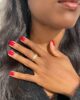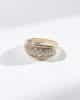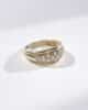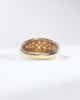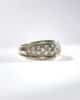 Sublime bague évoquant le style jarretière et datant du début des années 80. En or 18 carats, elle est sertie d’un pavage de 17 diamants de 0,01ct à 0,1ct. Le pavage central est entouré de deux lignes d’or godronnées, qui mettent en valeur l’or et lui apportent une brillance incomparable.