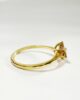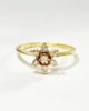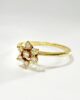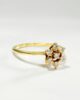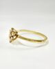 Sublime bague des années 50 en or jaune 18 carats sertie de 7 diamants taille brillant de 0,01 carats formant une marguerite. Une bague aux diamants dont le feu offre un scintillement hypnotique. Délicate et finement travaillée, cette pièce unique est témoin d’une époque révolue et d’un style féminin intemporel.