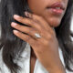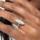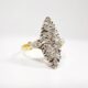L’histoire: La bague Marquise est un type de bague de forme oblongue de création française. Elle se caractérise par une pierre précieuse centrale auréolée de pierres plus petites, le plus souvent des diamants.