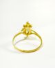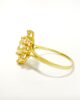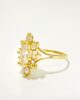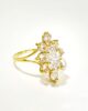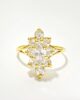 Sublime bague marquise des années 70 en or jaune 18 carats sertie de 8 zircons de 0,1 carats formant un halo autour d’un zircon taille navette de 0,7 carats. En serti griffe sur un chaton en or jaune ajouré, les gemmes d’un éclat étincelant sont centrées sur un anneau à deux branches se réunissant pour ne former qu’une. Un grand classique de la joaillerie à adopter au quotidien.