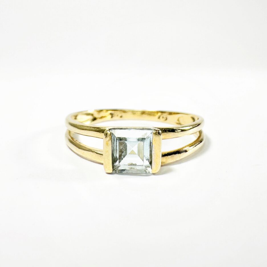 Bague or et aigue marine taille princesse “Célène”