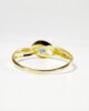 Sublime bague des années 70 en or 18 carats présentant un motif évoquant le signe porte bonheur de l’œil protecteur formé d’un saphir de Ceylan taille brillant de 0,25 carats figurant l’iris et de deux arabesques en or jaune formant les contours de l’œil. Les épaules de la bagues, formée de deux arabesques miroitantes, se réunissent pour former un anneau simple. Laissant apparaître la peau à travers son motif central ajouré, cette pièce symbolique et élégante deviendra unique avec celle qui la portera.