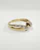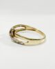 Sublime bague des années 70 or 9 carats en repercé à décor de rubans constitué d’un anneau central en or jaune entouré d’un ruban en or blanc serti d’un pavage de saphirs blancs. Une pièce féminine et raffinée, toute en courbes voluptueuses, prête à épouser votre doigt.