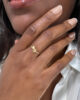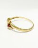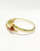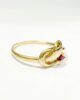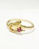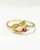Sublime bague des années 70 en or jaune 18 carats en forme de serpent centrée d’un rubis de 0,1 carat serti en griffe. Une bague toute en courbes gracieuses où la chaleur de l’or jaune exalte la vibrance du rubis; à enrouler autour de son doigt sans plus attendre.