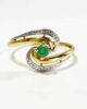 Elégante bague tourbillon du début XXème en or 18 carats ornée d’une émeraude taille brillant de 0,1ct. Le tourbillon entourant le diamant est formé de courbes et volutes en or jaune et blanc, offrant un sublime contraste avec la vibrante émeraude en son centre. Une pièce délicatement travaillée, lumineuse et féminine.