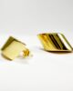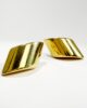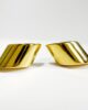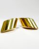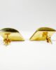 Superbe paire de boucles d’oreilles des années 50 en or 18 carats présentant un motif de trapèze bombé à fini miroitant. La paire de boucles féminine et sophistiquée par excellence, très « old Hollywood » et glamour. Sécurisées par un fermoir papillon et plus légères qu’elles n’y paraissent grâce à leur confection « soufflée », elles pourront se porter au quotidien en se laissant oublier.