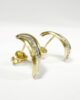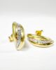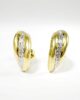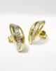 Elégantes boucles d’oreilles des années 70 en or 18 carats chacune formées d’une ligne en or blanc à fini diamant sertie d’un diamant 8X8 , embrassée par deux lignes godronnées en or jaune. Une pièce toute en courbe et en contraste qui apporte lumière au visage.