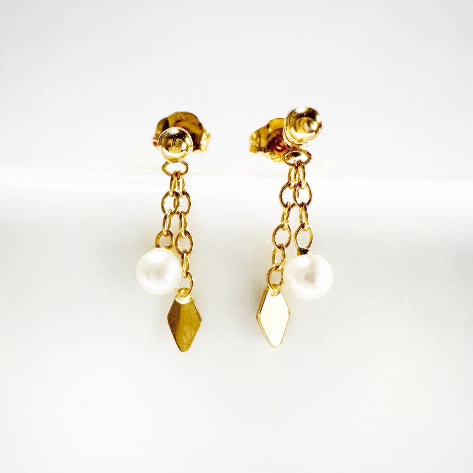 Boucles d’oreilles pendantes or et perles « Edelline »