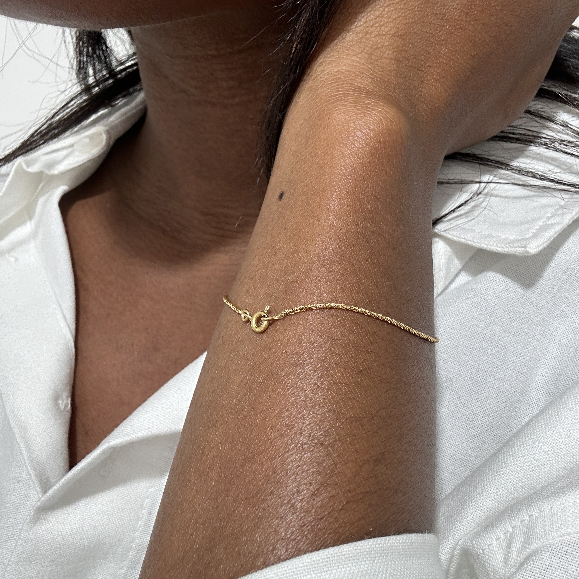 Sublime bracelet des années 50 en or jaune 18 carats présentant une maille torsade. Sécurisée par un fermoir à ressort, cette sublime pièce scintille à chaque mouvement en captant la lumière, pour un effet diamanté. Une pièce élégante et captivante à porter au quotidien.