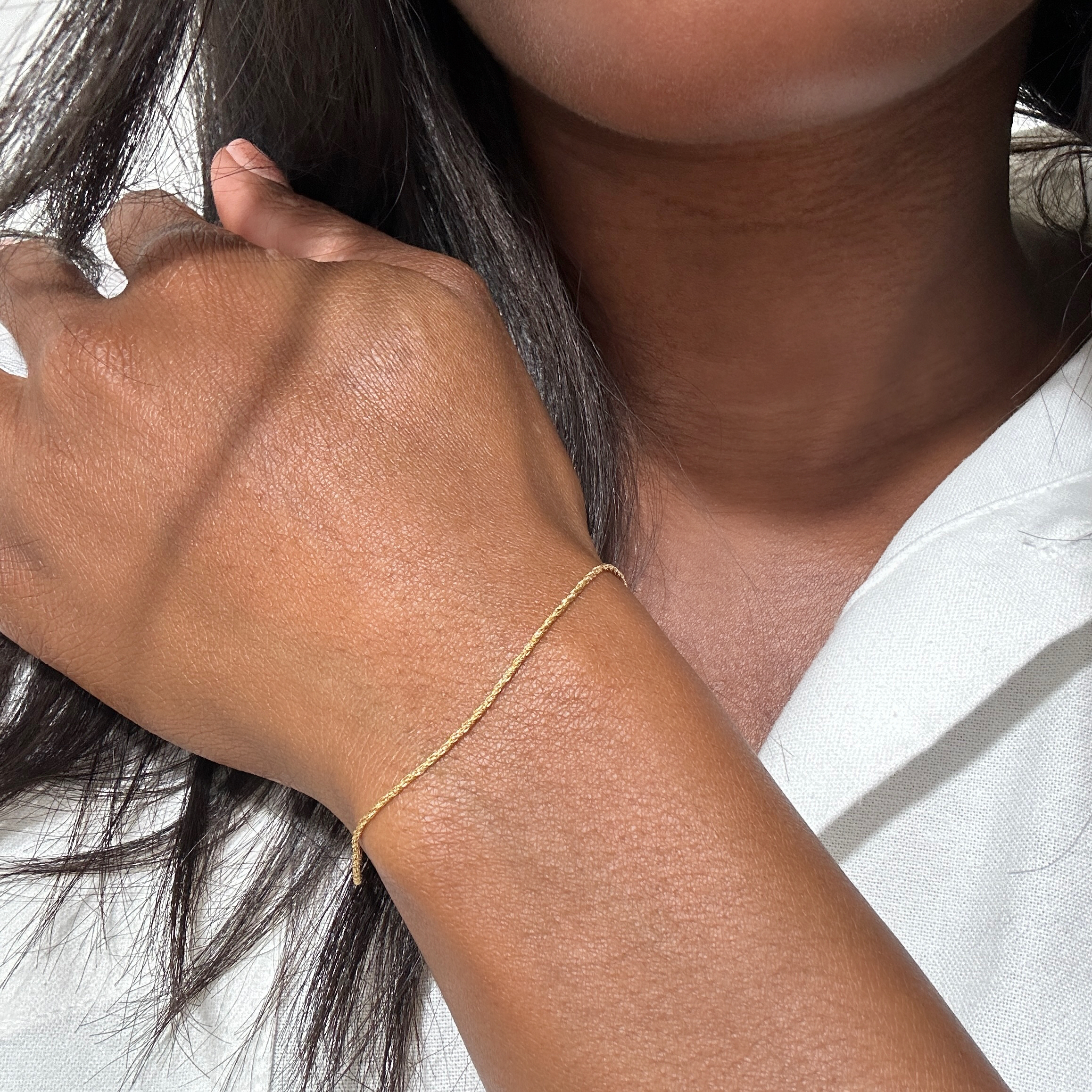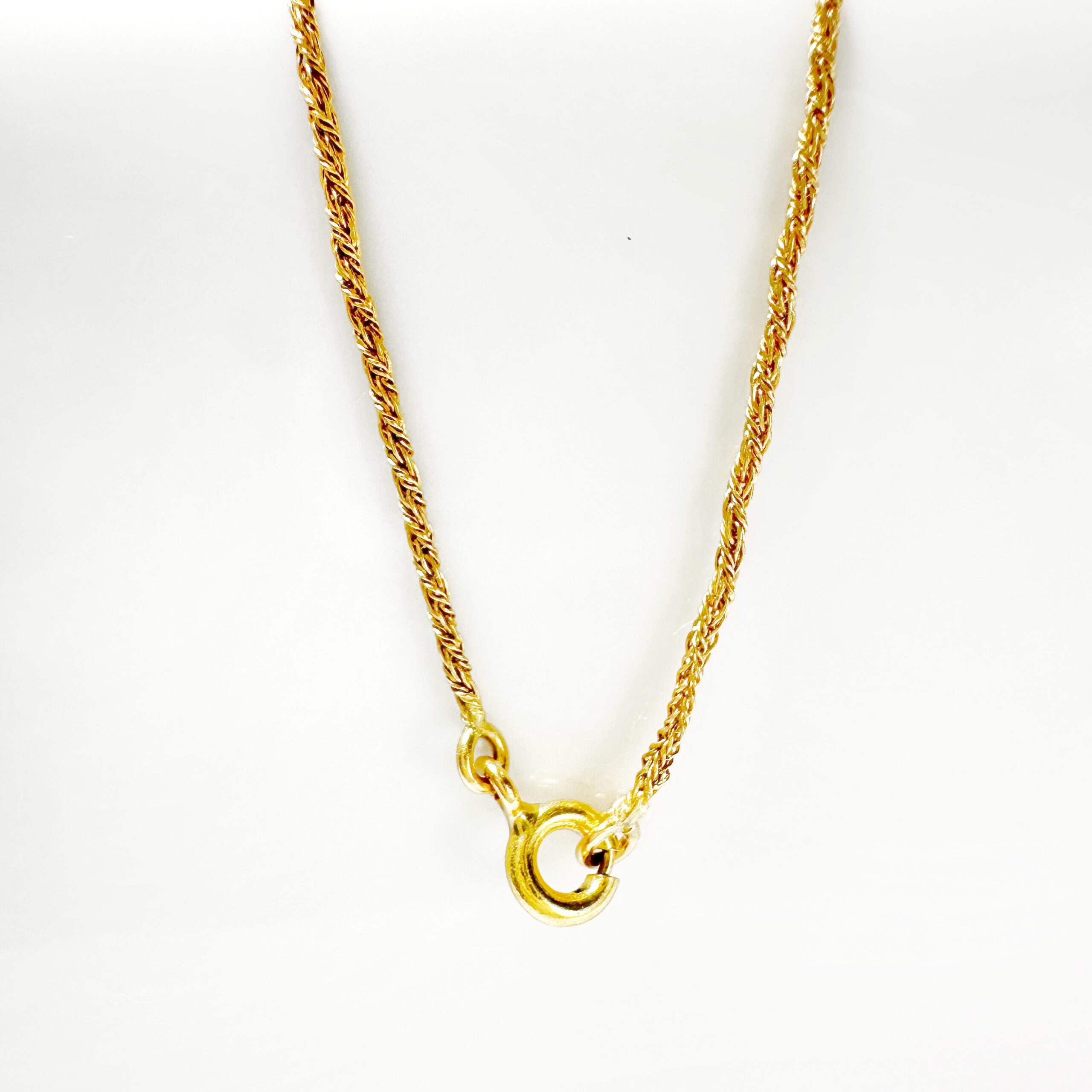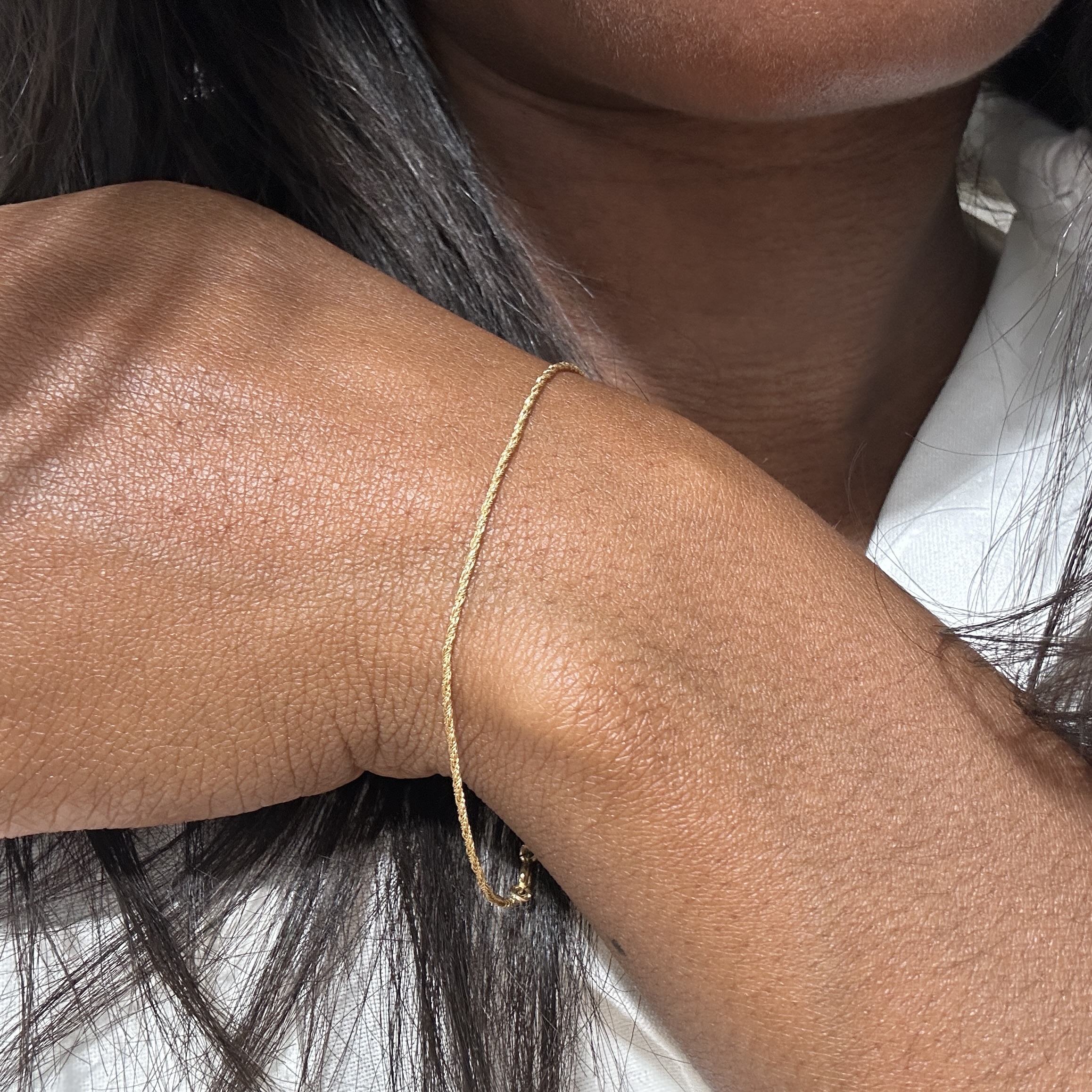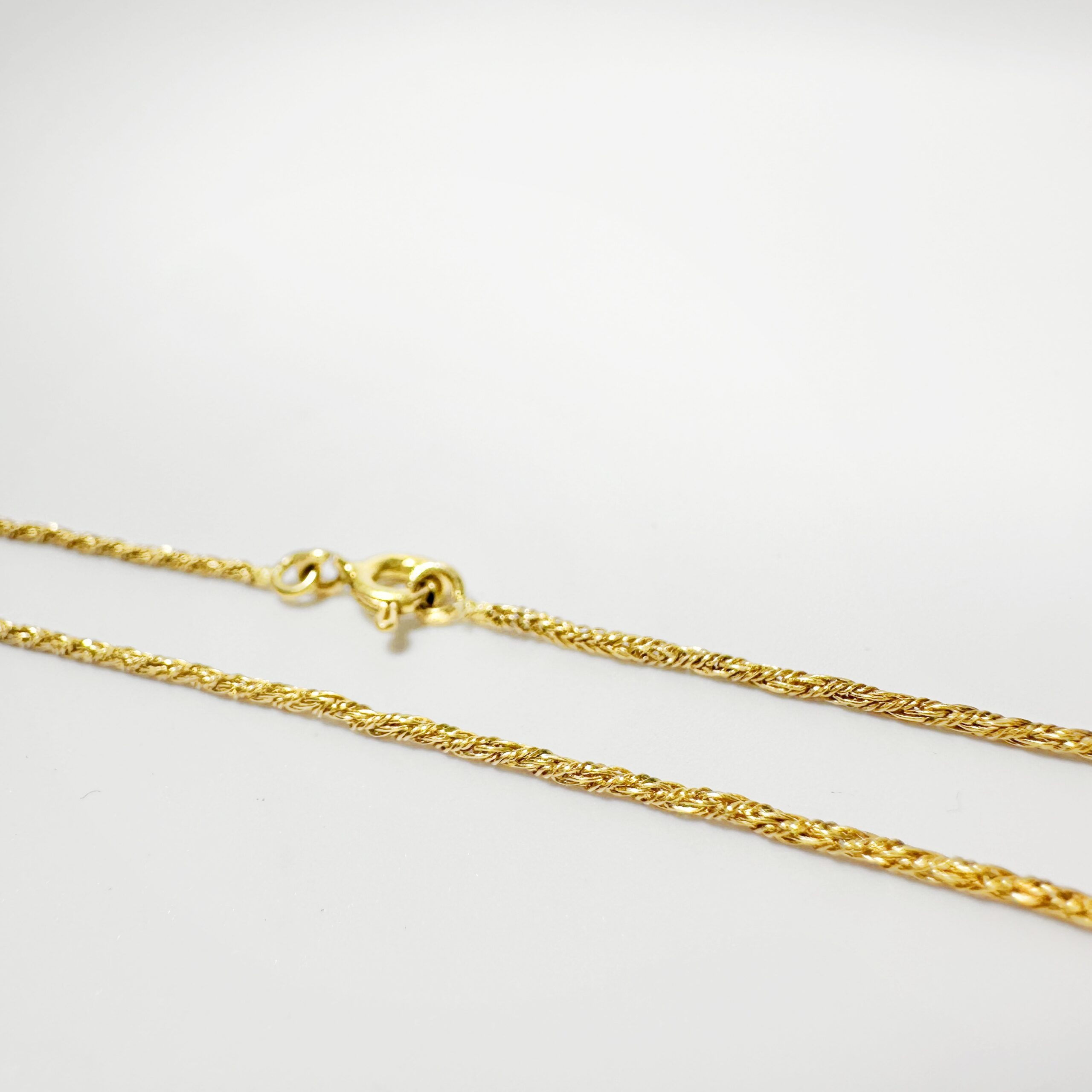 L’histoire : À la fois structuré et lumineux, le motif de la chaîne torsadée s’inspire des cordages entrelacés, dont les maillons régulièrement entrelacés évoquent force, continuité et harmonie. Utilisé depuis l’Antiquité dans diverses formes d’orfèvrerie, ce design repose sur un entrecroisement précis de maillons qui crée une surface riche en relief et en mouvement. Cette construction torsadée présente une particularité unique : elle capte et réfléchit la lumière sous de multiples angles. Chaque courbe agit comme une facette, produisant un éclat vif et scintillant, souvent comparé à celui du diamant. Ce jeu de lumière confère à la chaîne une brillance exceptionnelle, même dans sa plus grande simplicité. Appréciée à travers les époques pour sa résistance autant que pour son élégance, la chaîne torsadée incarne aujourd’hui un équilibre parfait entre technicité et raffinement — un bijou lumineux, au caractère affirmé, qui révèle toute la beauté du mouvement et de la lumière.