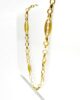Sublime collier du début du XXème siècle en or 18 carats constituée d’une alternance de mailles jaseron et de motifs en filigrane délicatement ciselés de forme ovoïde. Un collier élégant qui pourra se porter aussi bien en collier près du cou qu’en bracelet.