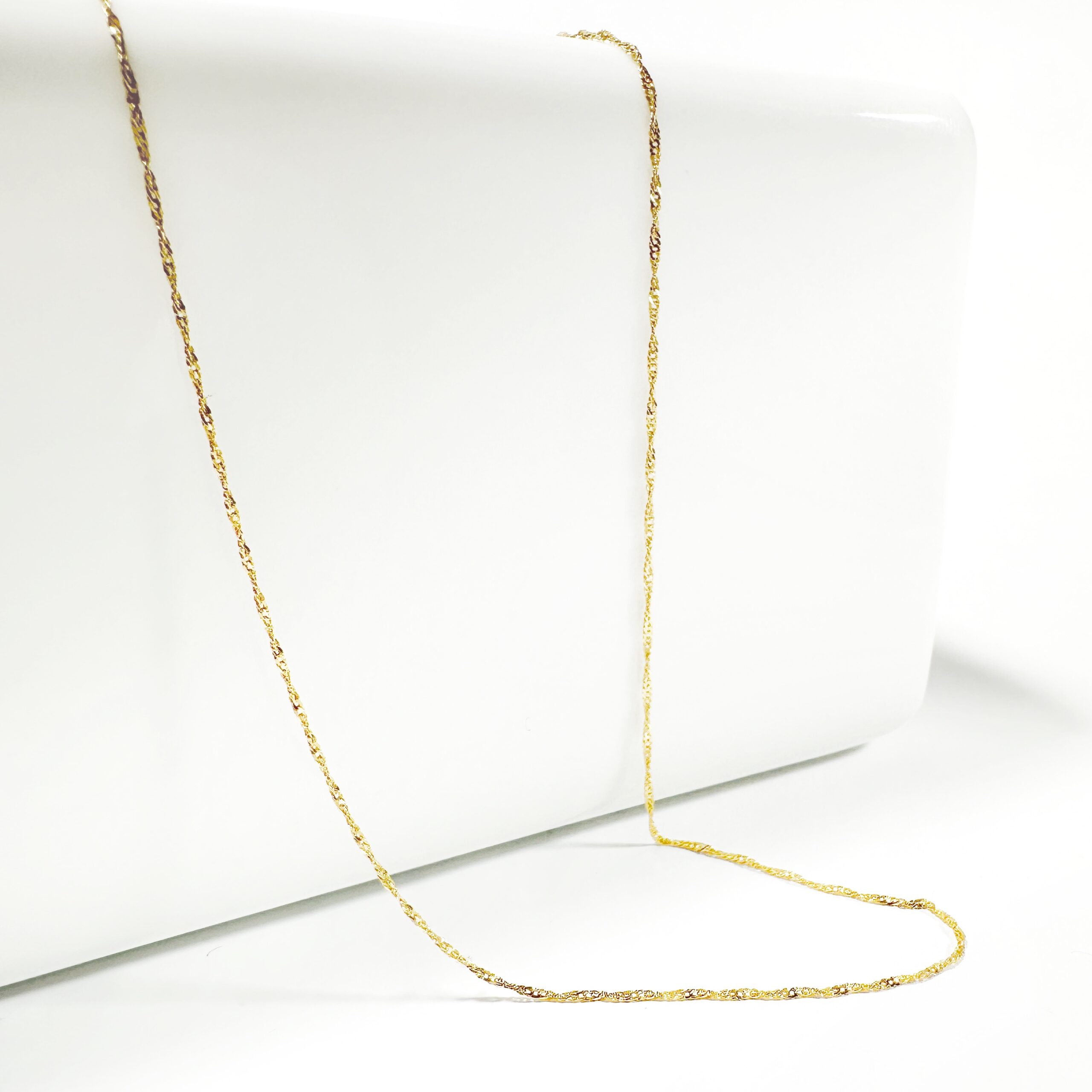 Sublime chaine fine en or 18 carats à maille torsade pour porter des pendentifs de poids léger. Un indispensable de toute collection de bijoux. Vendue sans pendentif.