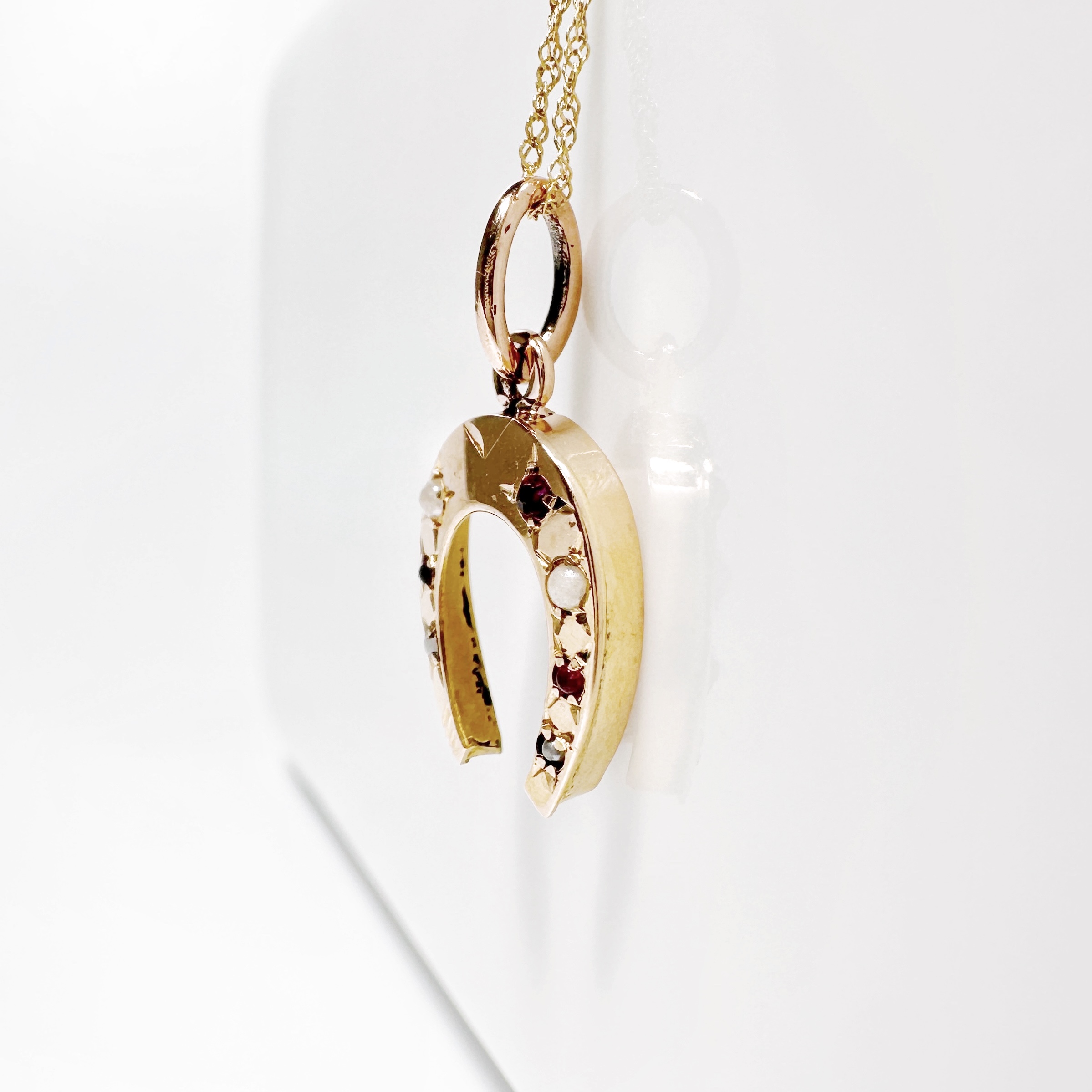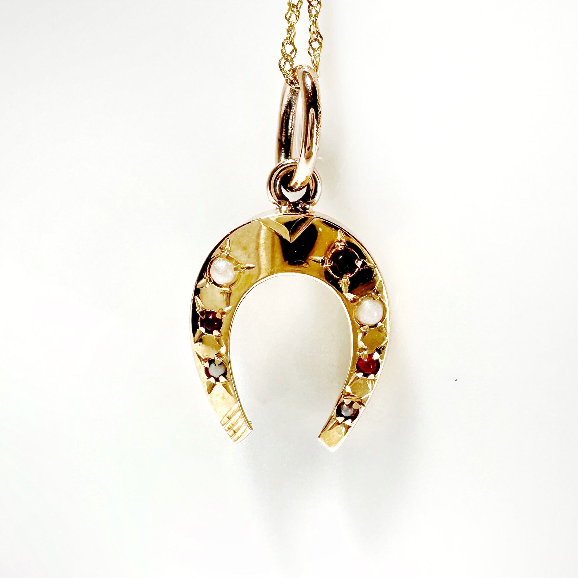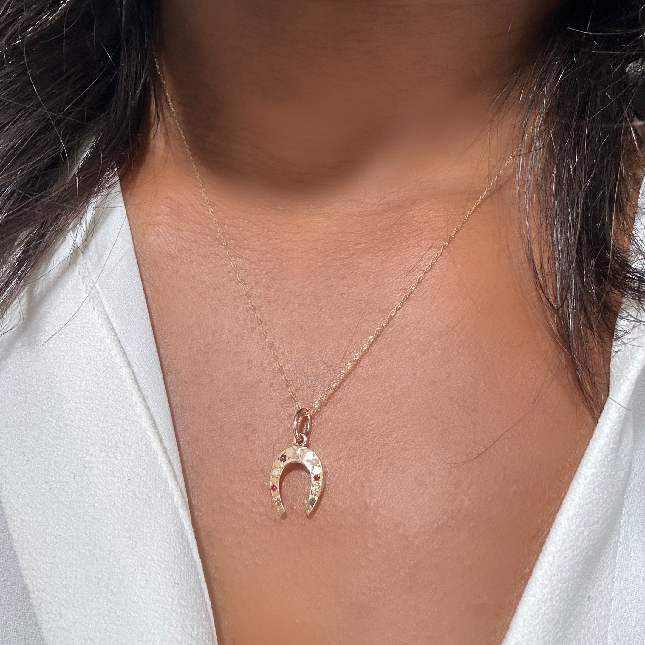 Pendentif fer à cheval or, perle fine et rubis « Talys »
