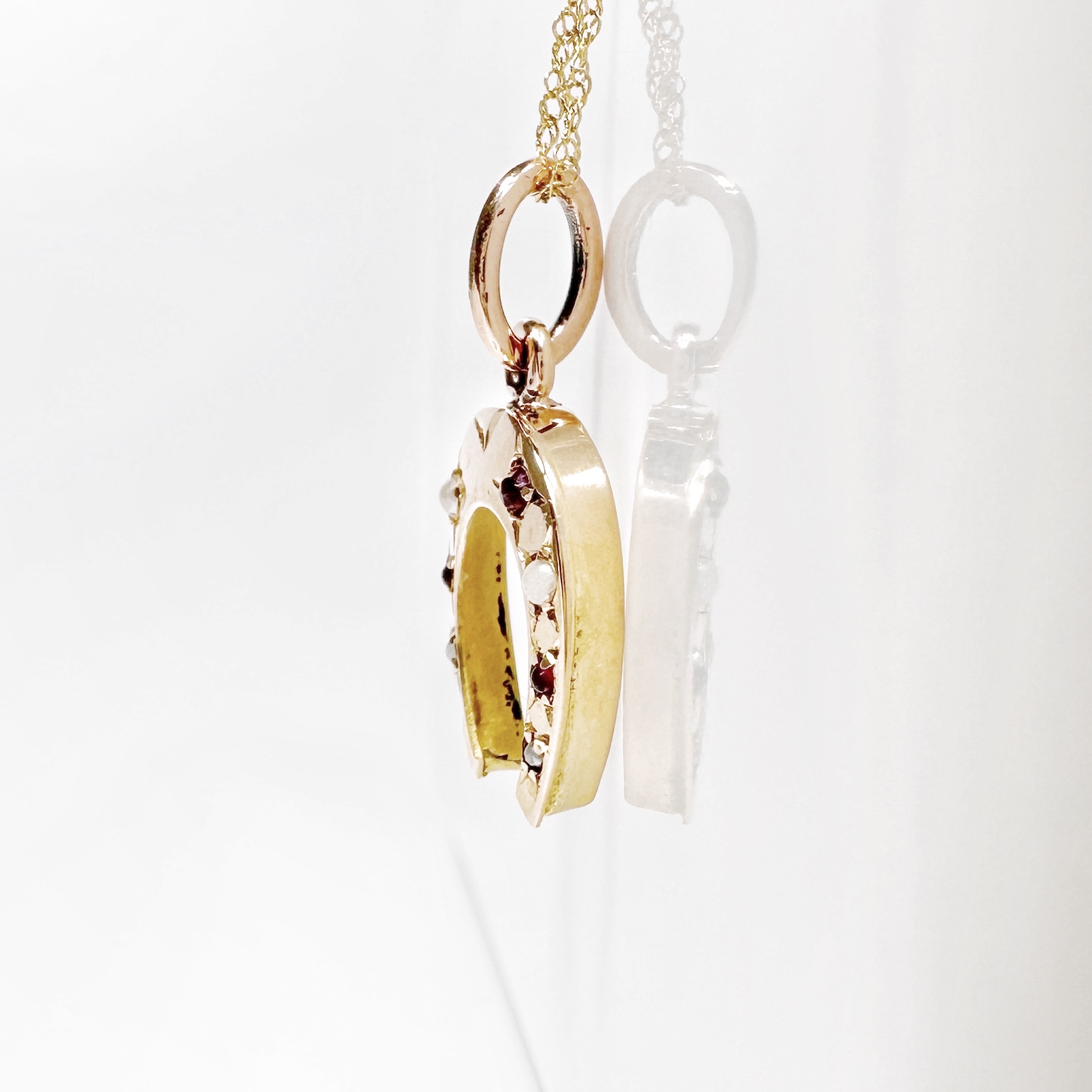 Cette nouvelle TransfÓ signée ÓNÍSÌ PARIS est une ancienne épingle à cravate du XIXème siècle en or jaune 18 carats convertie en pendentif. Sertie de 3 rubis de 0,01 à 0,015 carats et 4 demi perles fines, cette pièce porte bonheur classique et élégante pourra se porter tous les jours, seule ou en layering avec d’autres pendentifs porte bonheur.