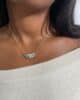 Cette nouvelle TransfÓ ou transformation signée ÓNÍSÌ PARIS est ancien collier des années 60 à armature rigide, transformé en collier sur chaine souple pour lui donner un style plus contemporain et facile à porter au quotidien. Il présente une pièce centrale de style Art Déco absolument exceptionnelle, présentent un diamant taille brillant central d’un diamètre de 5mm pour un poids carat de 0,50 carat, clarté VVSI et couleur G (incolore) et de deux lignes de 24 diamants sur or blanc totalisant 0,75 carat. Une pièce d’exception dont le feu des diamants captive instantanément.