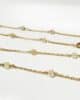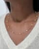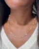Elégant collier du XIXème siècle en or 18 carats composé d’une succession de 15 perles fines interposées par une chaine à maille jaseron. Une pièce fine et délicate à porter au quotidien, seule ou en layering avec d’autres collier de longueur différente. A noter que les perles étant naturelles, elles sont toutes uniques et présentent un orient différent, allant du blanc rosé au gris bleuté.