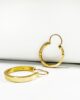 Magnifique paire de créoles en or 18 carats des années 60 dont le pourtour est décoré de motifs ciselés lui apportant un éclat scintillant. Une paire de boucles d’oreilles au style intemporel, à la fois élégant et facile à porter. Un classique sans lequel une collection de bijoux ne serait complète.