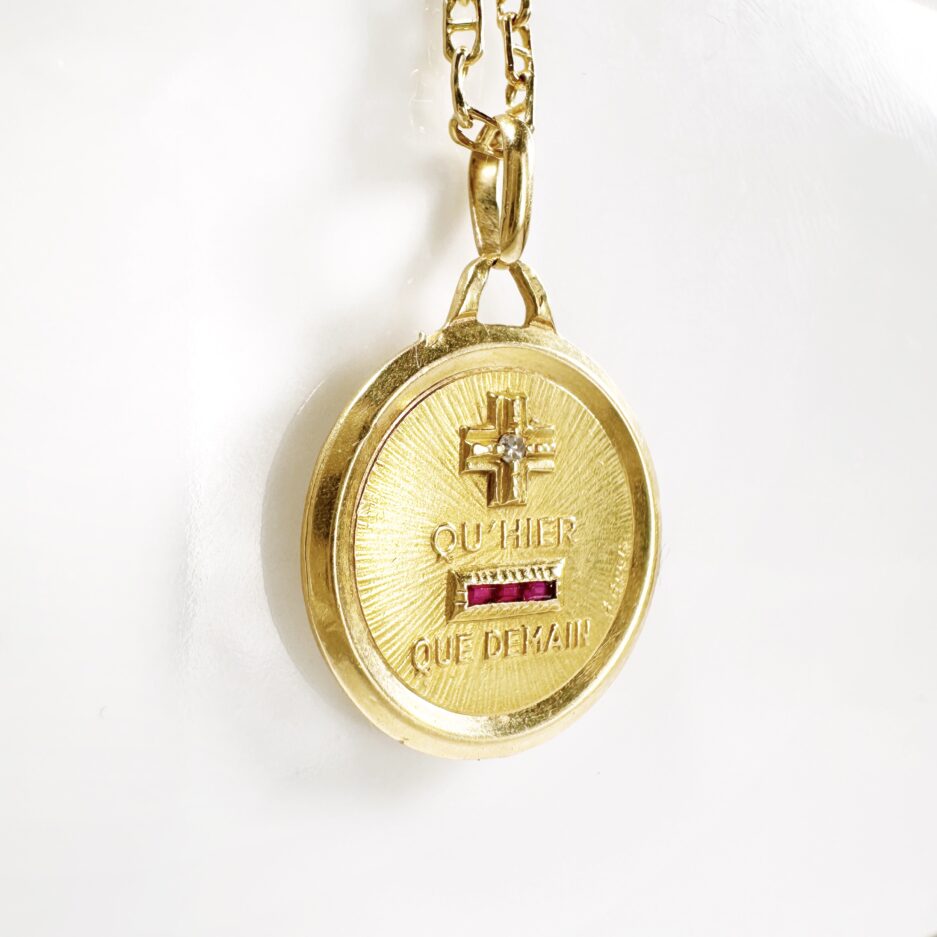 L’histoire: La première médaille d’amour du célèbre médailler Augis, également connue sous le nom de « médaille d’amour Augis, » a été créée en 1907. Cette pièce iconique s’inspire d’un vers célèbre de la poétesse Rosemonde Gérard : « Car, vois-tu, chaque jour je t’aime davantage, aujourd’hui plus qu’hier et bien moins que demain ». La médaille comporte souvent un « + » et un « – » pour symboliser « plus qu’hier, moins que demain » et est devenue un symbole intemporel de l’amour durable, apprécié en France et dans le monde entier. Se déclinant sous de nombreux designs, la médaille à motifs de coeur parée de rubis est l’un des modèles les plus rares et recherchés des collectioneurs et des esthètes romantiques.