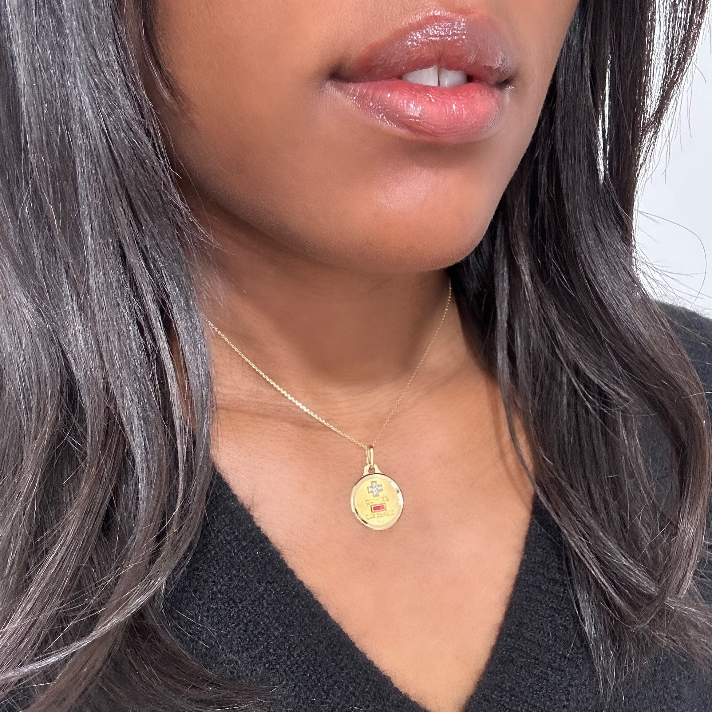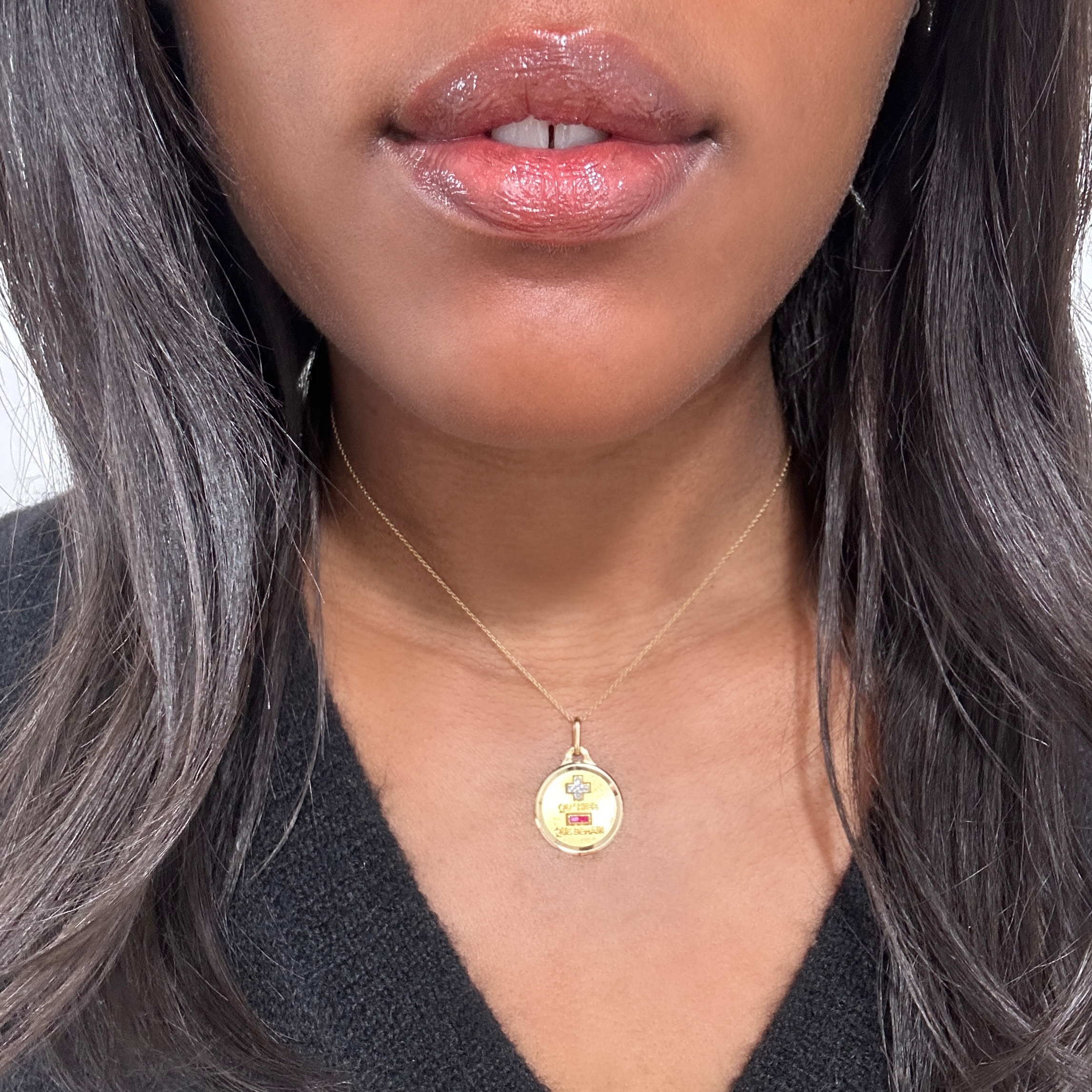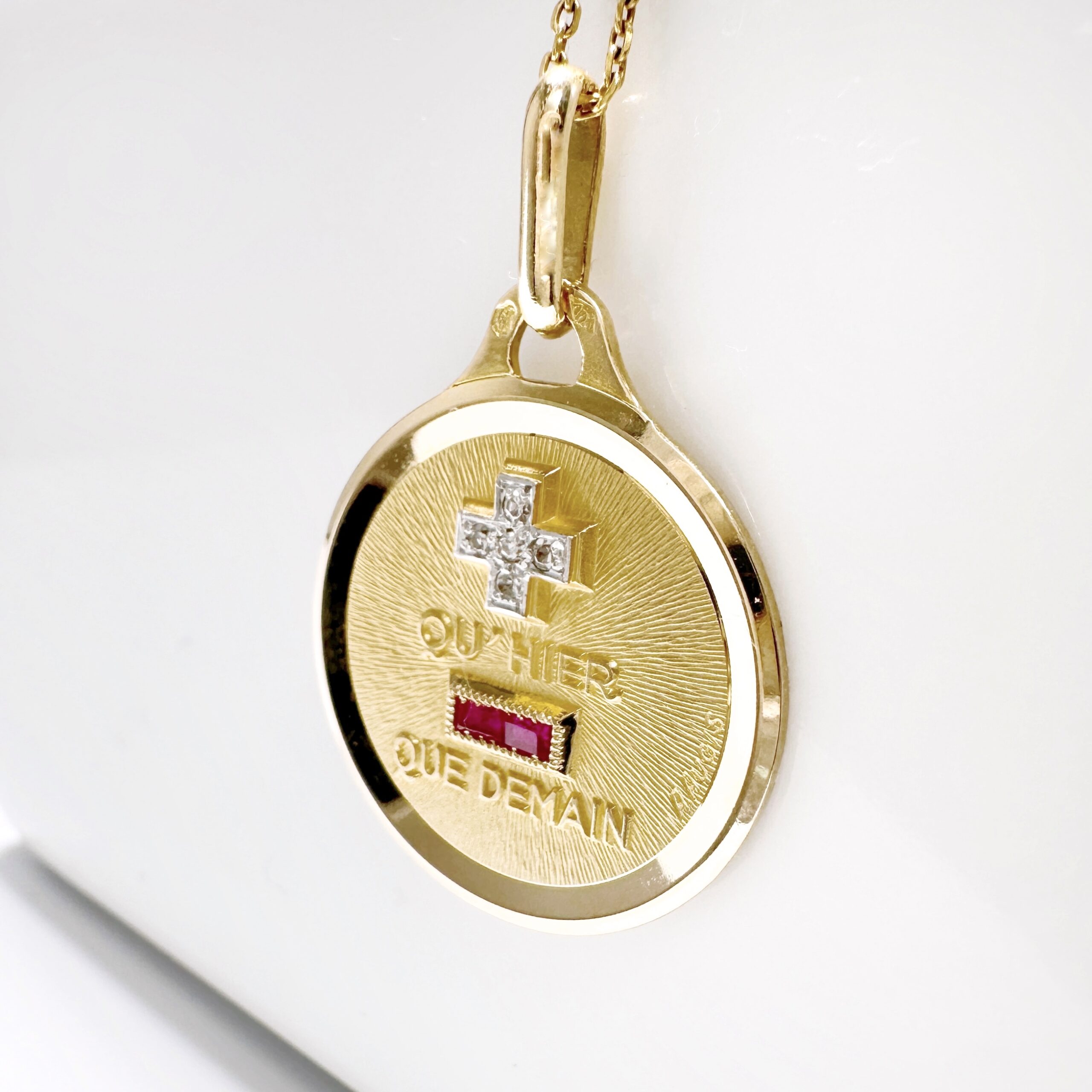 Médaille d’amour or, rubis et diamant Augis « Rosine »