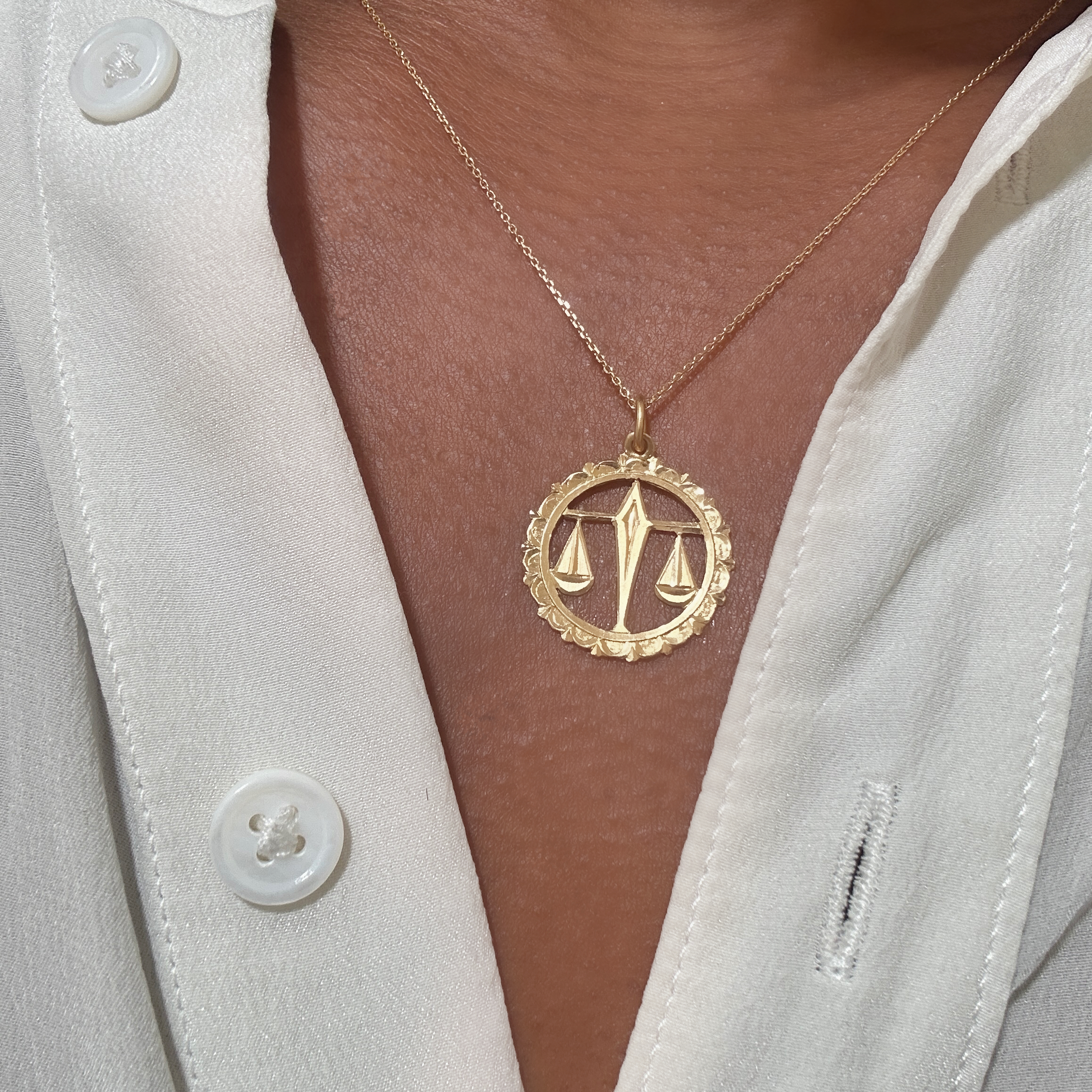 Médaille porte-bonheur astrologique Balance or “Astraea”