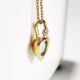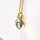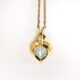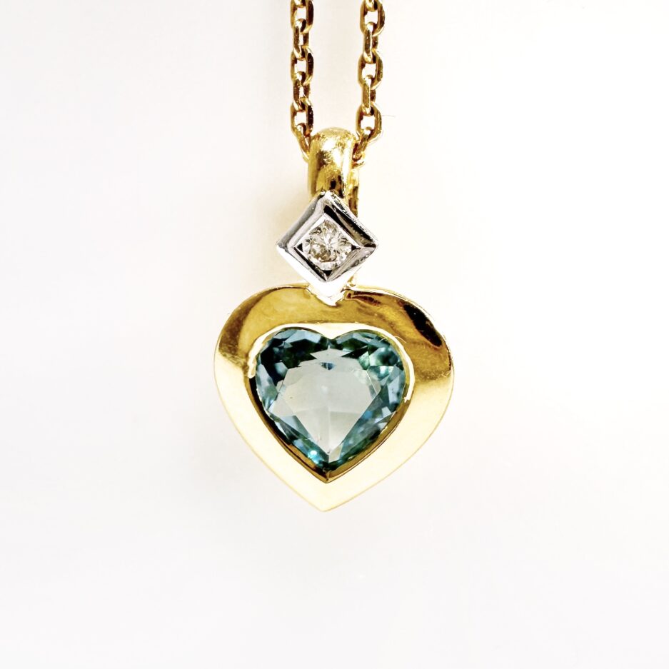 Sublime pendentif des années 70 en or 18 carats serti d’une aigue marine taille cœur de d’1,25 carats en serti clos surmonté d’un diamant taille brillant taille 8×8 en serti gris sur or blanc et encadré d’un losange en or blanc. Une bélière fixe invisible maintien l’aigue marine, dont le bleu caraïbe étincelant est réhaussé par la chaleur de l’or jaune pour un effet des plus saisissants. Une pièce romantique à porter au quotidien sur une chaine fine près du cœur.