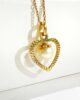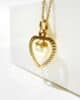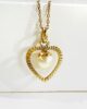Adorable pendentif des années 60 en or jaune 18 carats en forme de cœur, se composant d’une bordure en or ciselé et ouvert au centre duquel se trouve une perle de culture de 0,7 cm de diamètre. Le cisela de l’or apporte un scintillement inégalable au pendentif tandis que la blancheur de la perle capte la lumière. Vendu sans la chaîne.