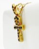 Superbe pendentif en or 18 carats des années 70 représentant la croix d’Ankh sertie de 19 saphirs d’un bleu sombre presque noir, sur le motif principal et sa bélière en forme de lotus égyptien. Précieuse et travaillée, cette croix ansée pourra aussi bien se porter en breloque sur un bracelet qu’autour du cou, seule ou cumulée avec d’autres pendentifs. Vendu sans chaîne.