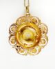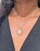 Cette nouvelle TransfÓ ou transformation signée ÓNÍSÌ PARIS est une ancienne broche de l’époque Bonaparte convertie en pendentif en or rose 18 carats. Au cœur de ce médaillon en forme de rosace est niché un motif solaire serti d’un diamant taille rose d’environ 0,08 carat. Les contours de ce pendentif ainsi que la bélière présentent un délicat ciselage en filigrane serti de 8 demi perles fines blanches et irisées. Une pièce à la fois typique de la fin du XIXème siècle, témoin d’un savoir faire oublié. Vendu sans chaîne.