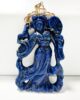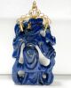 Sublime pendentif des années 60 représentant la figure mythologique chinoise He Xiangu dans une pièce rare en lapis lazuli serti sur une monture en or 14 carats et retenu par une bélière mobile. Cette pièce unisexe à la fois imposante et symbolique pourra se porter seule sur une chaine en or épaisse, un cordon de cuir ou même avec un collier de perles pour créer différentes combinaisons, de la plus élégante à la plus décontractée,