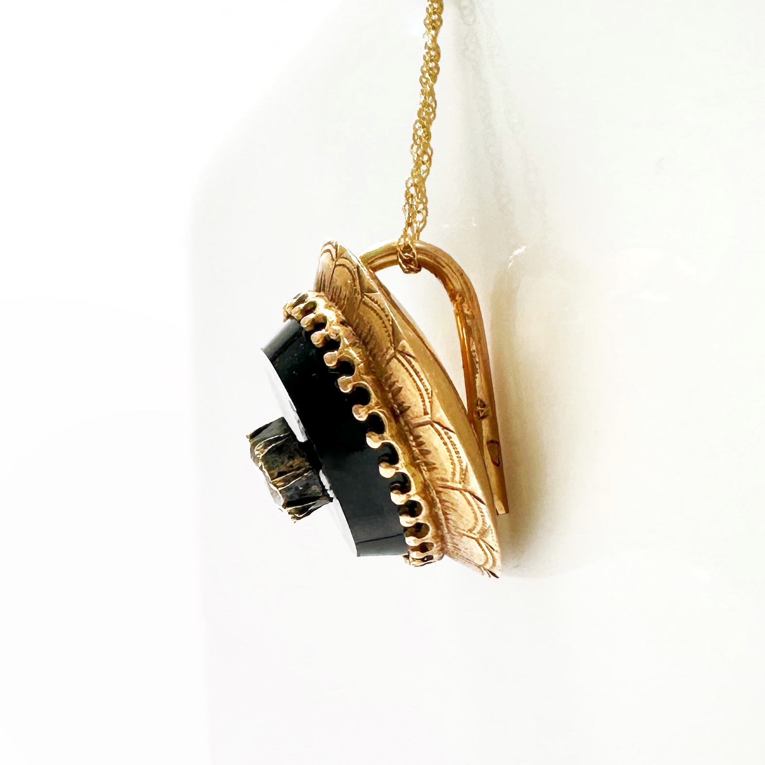 Métal : Or 18 carats, Or tous titresPierre : Diamant, OnyxÉpoque : 19èmeGenre : Bijoux femmes anciens et vintage