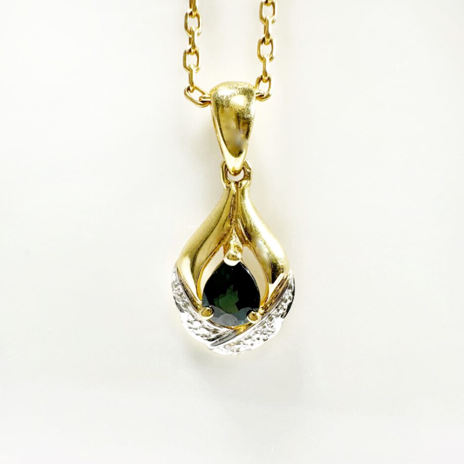 Pendentif or, saphir poire et diamant « Esmeline »
