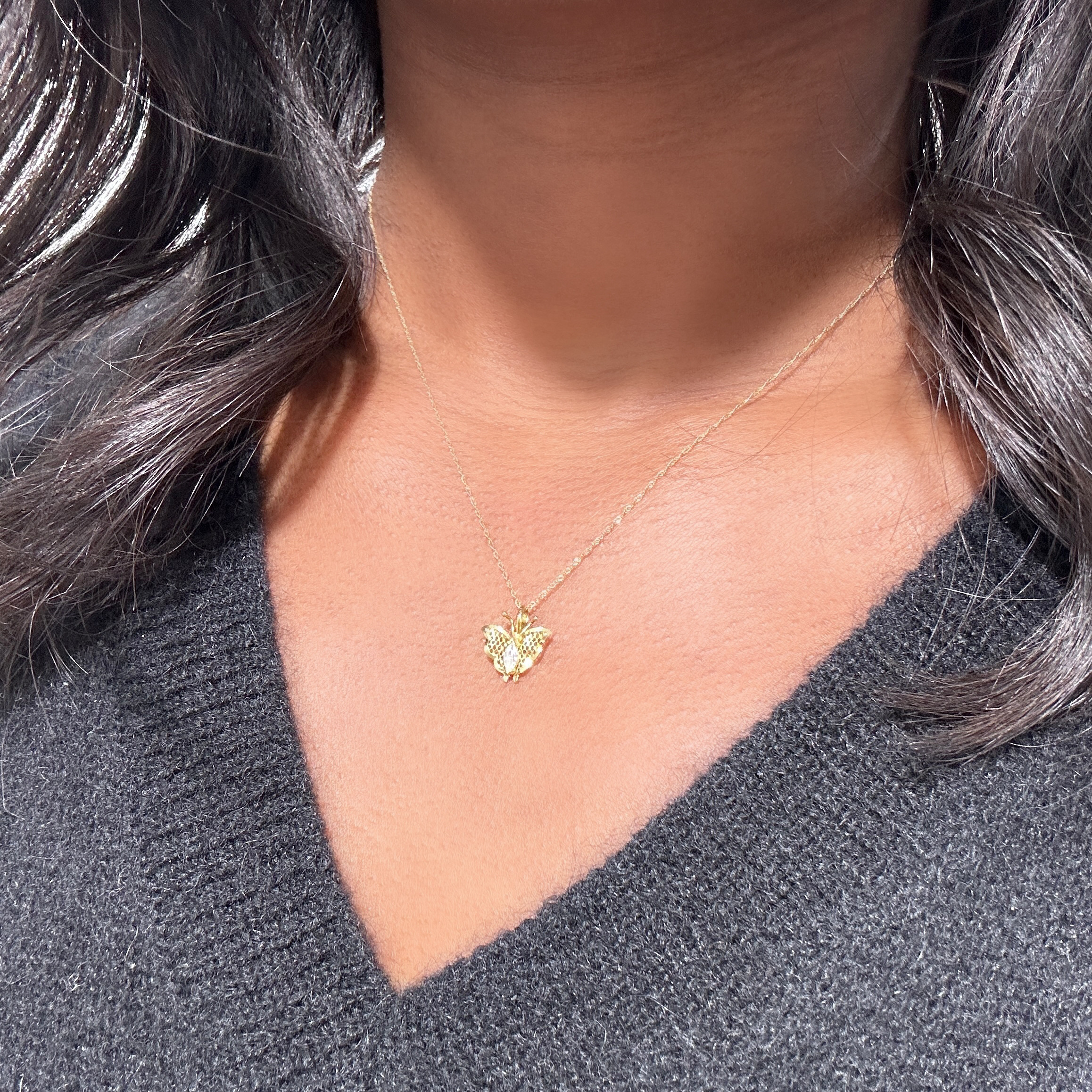 Pendentif papillon or et saphir blanc marquise « Appolina »