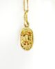 Adorable pendentif des années 60 en or 18 carats façonné à la main, représentant le symbole porte-bonheur du scarabée en or a fini mat et brillant. Au dos du pendentif, un symbole de cartouche représentant le symbole du scarabée est ciselé dans l’or. Petit et élégant, ce pendentif pourra aussi bien se porter en breloque sur un bracelet qu’autour du cou, seul ou cumulé avec d’autres pendentifs.