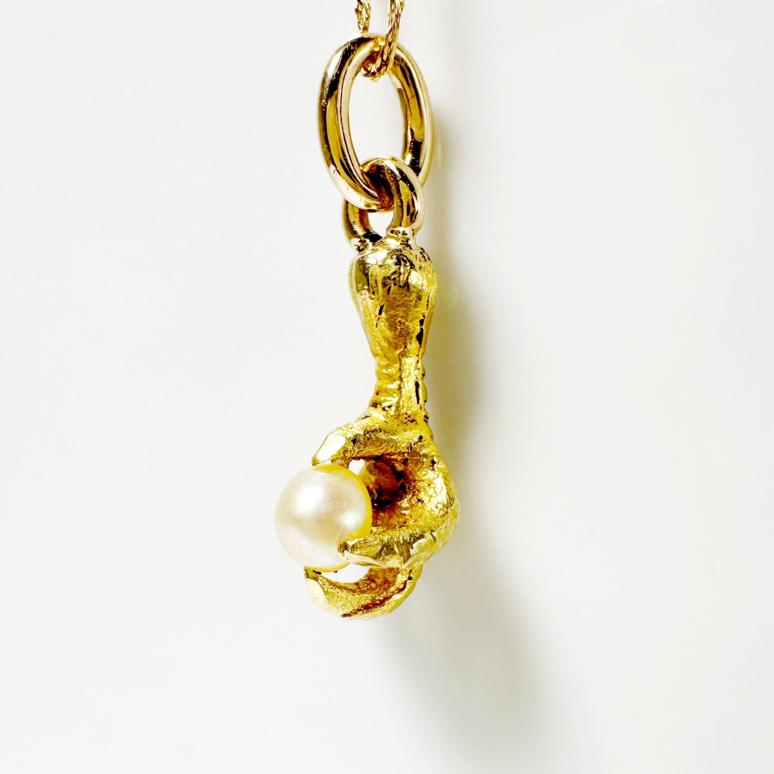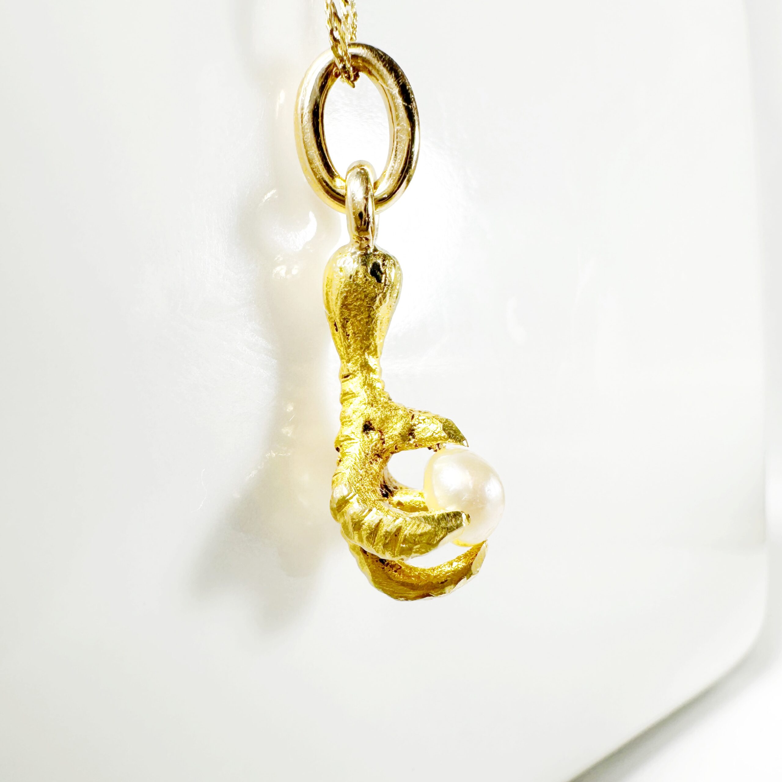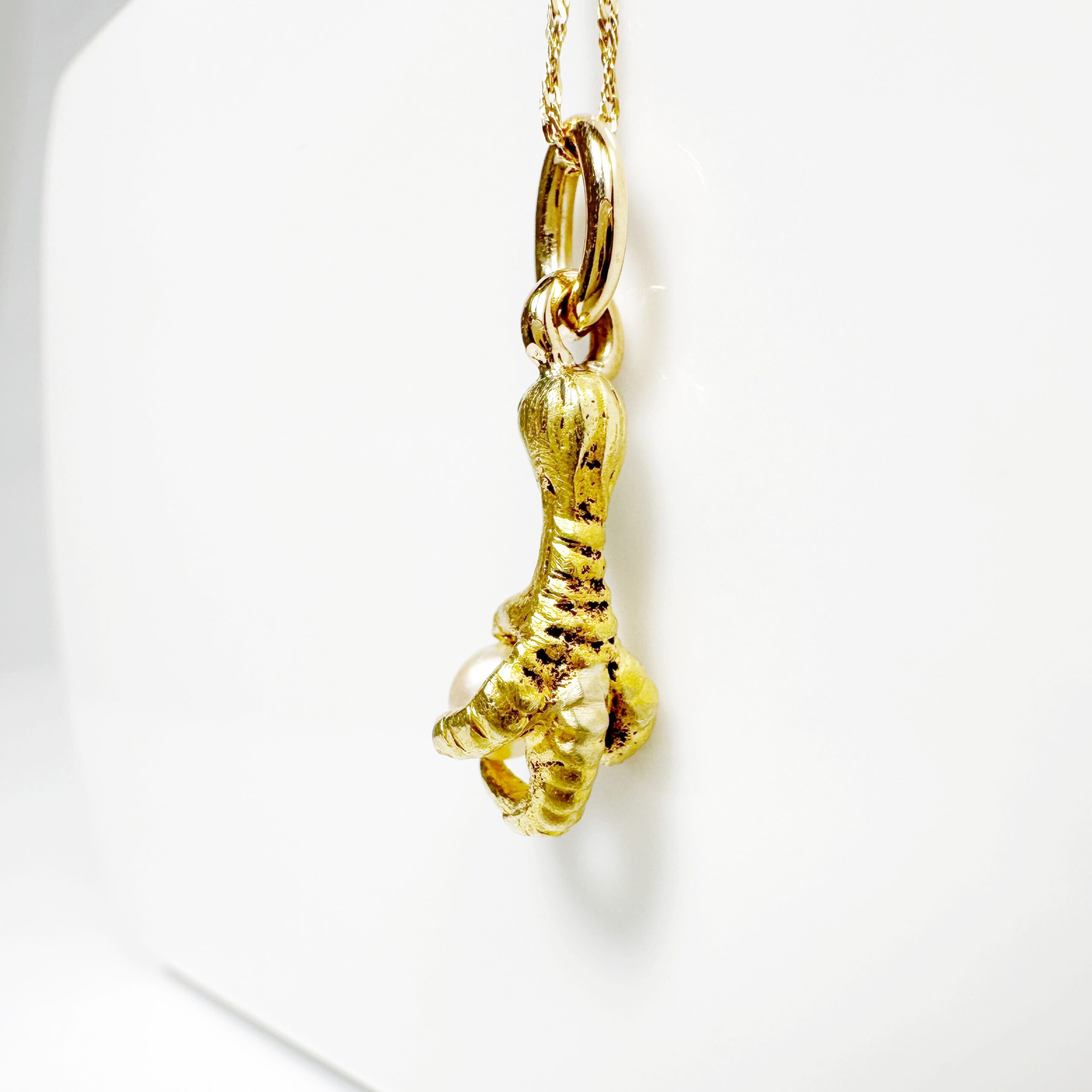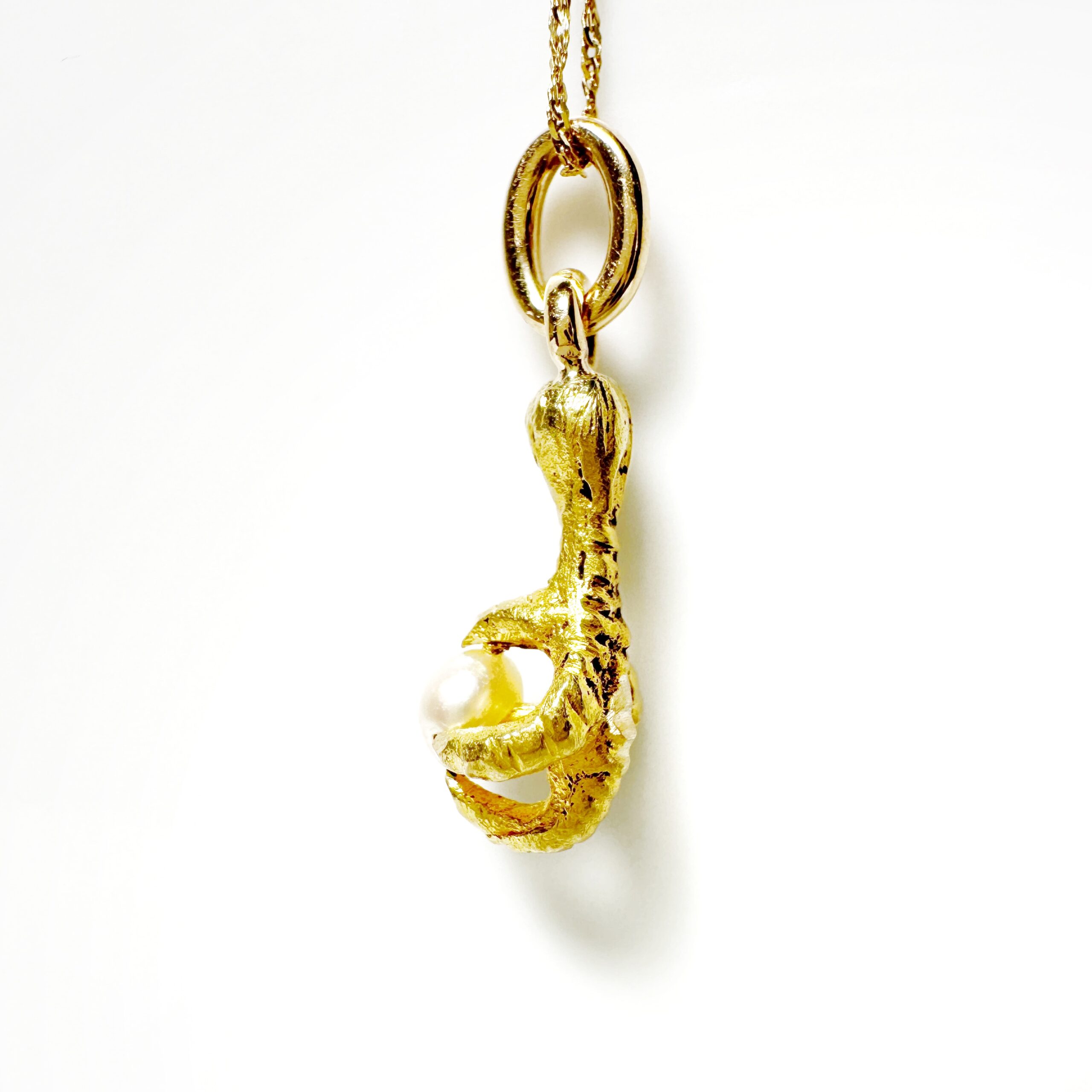 Cette nouvelle TransfÓ ou transformation signée ÓNÍSÌ PARIS est une ancienne épingle à cravate du XIXème siècle en or 18 carats figurant une serre d’aigle retenant une perle de culture sertie en griffe. Une pièce originale au style unisexe à porter sur une fine chaine autour du cou.