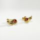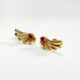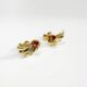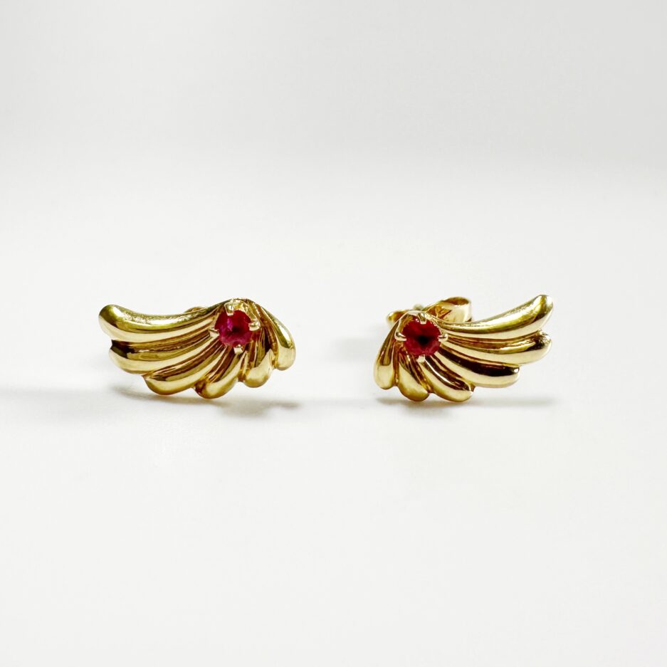 Superbe paire de puces d’oreilles des années 60 en or 18 carats serties de 2 rubis taille brillant de 0,1 carat d’un rouge vibrant. Chaque pierre est auréolée par des volutes en or jaune apportant éclat et lumière au bijou. Une pièce élégante à porter au quotidien.